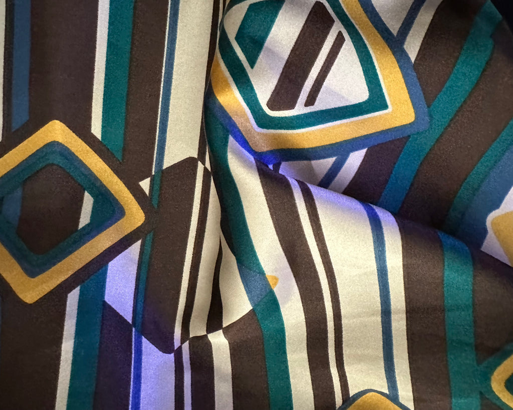 Umber Golden Teal Satin Pleated scrub hat by MedCap®, bouffant satin fabric styled scrub cap helps fine and delicate hair by reducing wear caused by rub and friction that can come from long hours of wear. This pleated cap is designed to cover a variety of hair styles and lengths. The adjustable cord lock makes the bouffant an adjustable fit scrub hat and the banded single seamed front allows for that all important comfort on long working days. The bouffant scrub hats are made from silky satin fabrics, a variety of prints.